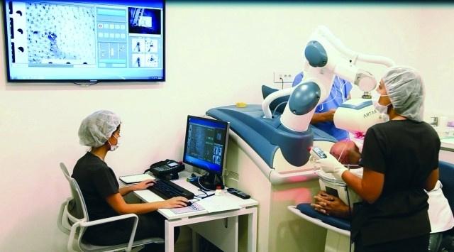 وتابع والي: نجاح أي عملية زراعة يرتكز في المقام الأول على صحة وسلامة بصيلات الشعر المقطوفة، وهنا تبرز دقة نظام «آرتاس» المتطور، حيث يصور ويحلل وينتقي وبإشراف الطبيب أفضل البصيلات، لتقوم بعدها الذراع الآلية باقتطاف كل بصيلة بأفضل زاوية لتحافظ على سلامة الشعرة كاملة، ودون إلحاق أي ضرر بها أو بالأنسجة المحيطة بها، وتعتبر هذه الدقة حجر الأساس في الاقتطاف، وهي المعول الأساسي في زيادة فرص نمو الشعرة بعد زرعها في بيئتها الجديدة.