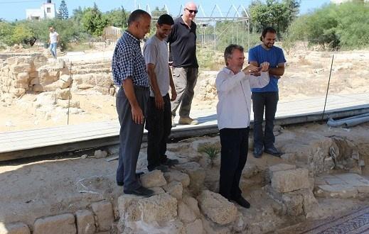 وختم الوفد جولته بزيارة موقع تل رفح الأثري الواقع بالقرب من الحدود الفلسطينية المصرية حيث تم تقديم شرح مفصل عن آخر ما توصل إليه مشروع التنقيب في الموقع وما يواجهه من معيقات كبيرة تحول دون مواصلة اكمال المشروع وتأهيله بما يناسب مكانته الأثرية.