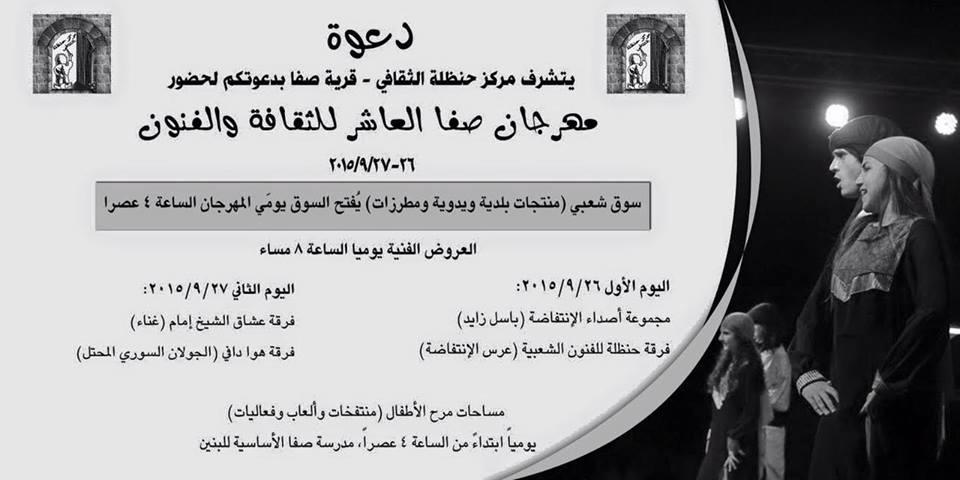 يشار إلى أن مهرجان صفا العاشر الذي ينظمه مركز حنظلة الثقافي يقام برعاية إعلامية من شركة راية للإعلام والنشر.