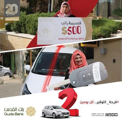 بنك القدس يسلم سيارة أوبل كورسا للفائزة من رام الله و500 دولار للفائزة من طولكرم