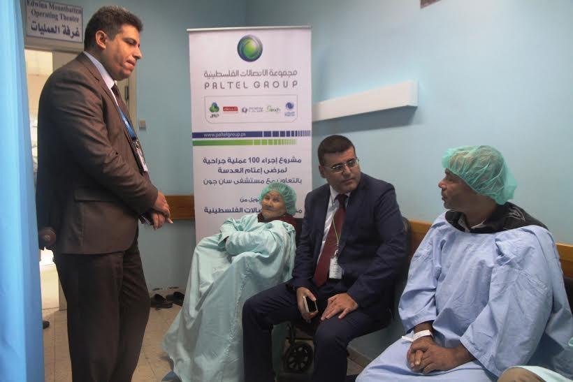 غزة :قام وفد من مجموعة الاتصالات بعمل زيارة ميدانية للمرضى المصابين بمرض إعتام العدسة و الذين تجرى لهم عمليات جراحية بتمويل من مجموعة الاتصالات الفلسطينية وتنفيذ مجموعة مستشفى سان جون للعيون للسنة الثالثة، حيث اطمئن الوفد على المرضى و على سير العمليات في المستشفى، وضم الوفد كل من عمر شمالي مدير عام إقليم غزة بشركة جوال، م. خليل أبو سليم مدير عام إقليم غزة بشركة الاتصالات الفلسطينية، عوني الطويل مدير شركة حضارة بغزة.