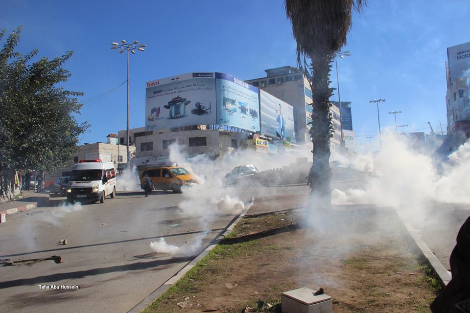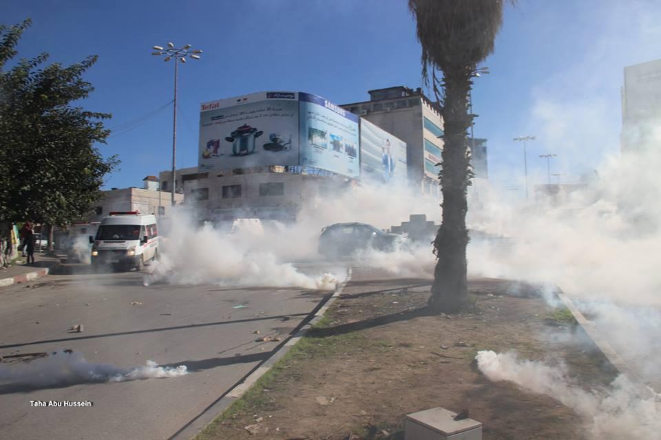 وأصيب العشرات بحالات الاختناق من الغاز المسيل للدموع، خلال مواجهات عنيفة اندلعت في منطقة رأس الجورة، بين الشبان الفلسطينيين وجيش الاحتلال الاسرائيلي، عقب المسيرة التي خرجت من مسجد الحرس لمدخل الخليل الشمالي.