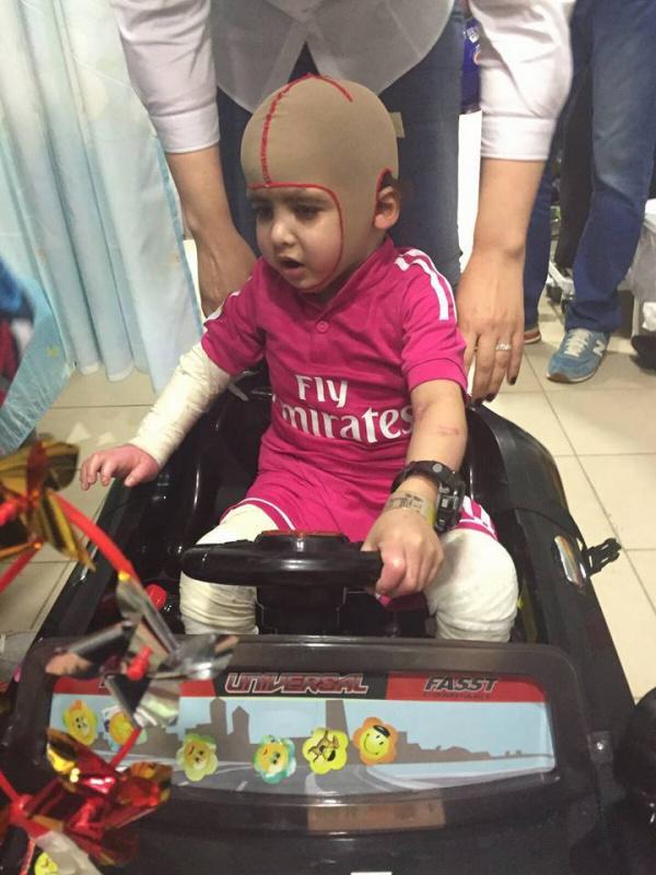 وأشار دوابشة في حديث لــ" رايــة " بأن الطفل احمد يحب كرة القدم وأنه حين يُسأل عن ناديه المفضل لكرة القدم "بتحب ريال المدريد ولا برشلونا" يقول : " ريال المدريد" لذلك جلبنا له هذا القميص .
