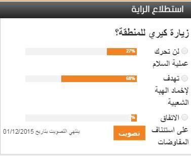 واعتقد 68% من المستطلعة اراؤهم ان جولة كيري تندرج في هذا الاطار.