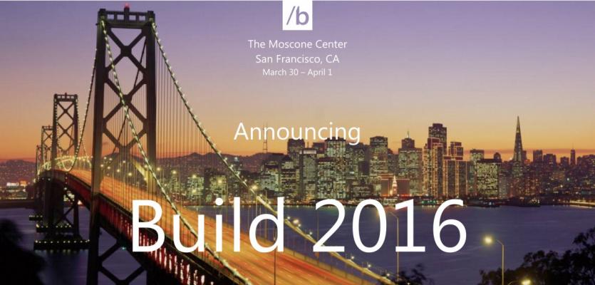 كشفت شركة مايكروسوفت رسميًا عن موعد مؤتمرها للمطورين Build 2016، حيث حددت 30 مارس/آذار 2016 كموعد رسمي لبداية المؤتمر في مدينة سان فرانسيسكو في الولايات المُتحدة الأمريكية.