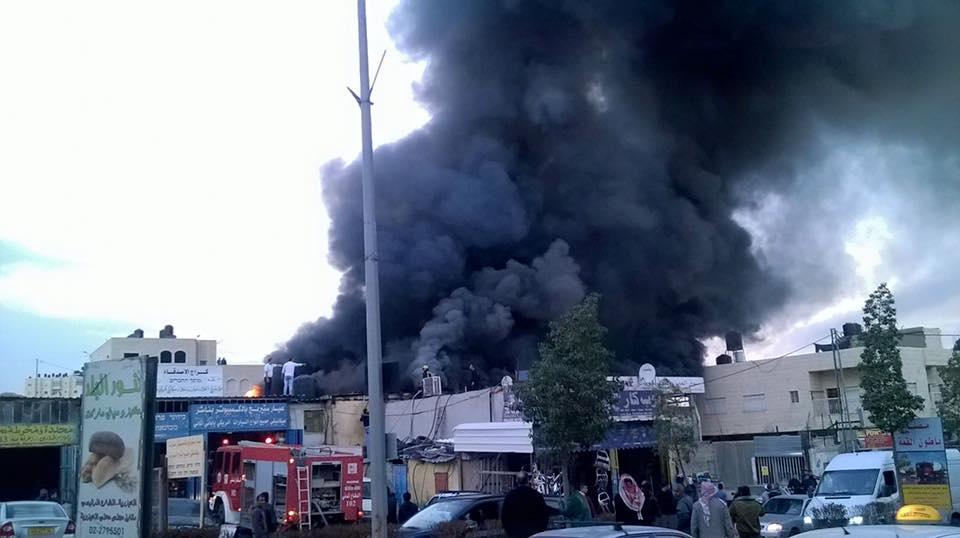 اندلع حريق مساء اليوم السبت، بأحد الأسواق في بلدة العيزرية شرق مدينة القدس المحتلة.