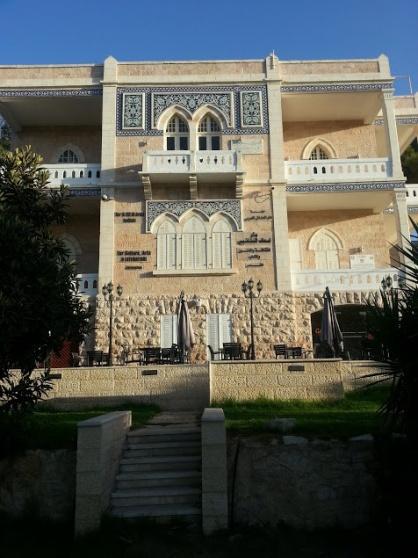يصف الخطيب المبنى قائلا: "مبنى دار اسعاف النشاشيبي ليس له مثيل في القدس وهو من أجمل المباني من الناحية المعمارية، فتم مزج البناء القديم بالحديث، وأضيف له اليوم هيكل حديدي ومصعد بانورامي من الزجاج، وفي الطابق الأرضي افتتح مقهى ليدخل ايرادات بسيطة تساعد على تشغيل المبنى، وفي الخارج أنشئت حديقة متدرجة".
