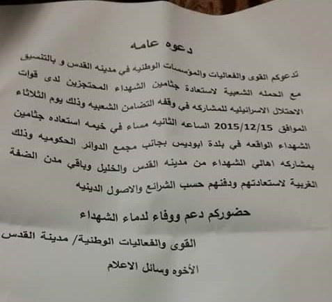 وقفة للمطالبة باسترداد جثامين الشهداء في ابو ديس غداً