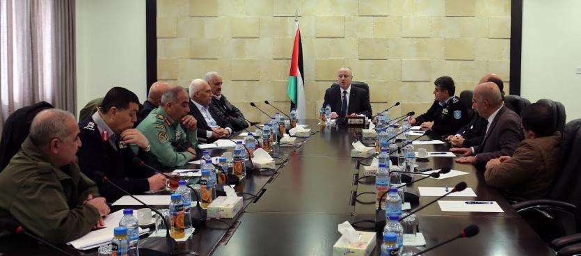 ترأس رئيس الوزراء وزير الداخلية د. رامي الحمد الله، اليوم الثلاثاء في مكتبه برام الله، اجتماعا لقادة المؤسسة الأمنية، للإطلاع على أخر التطورات الأمنية، وسير العمل في حفظ النظام وسيادة القانون.