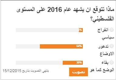 ثلثا الفلسطينيين لايتوقعون إنفراجا سياسيا خلال 2016