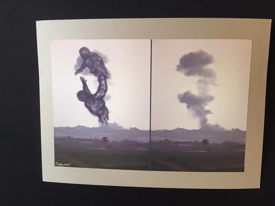 وقالت الفنانة بشرى شنان احد المشاركين،" أن المعرض افكار وجهود ذاتية.. صورنا من خلاله "الحرب الأخيرة على غزة" من خلال تصوير الانفجارات و الرسم عليها.. استخدمنا الحاسوب وبرامج الفوتوشوب والرسام خلال عملنا.. لم نعتمد فقط على الرسم اليدوي.