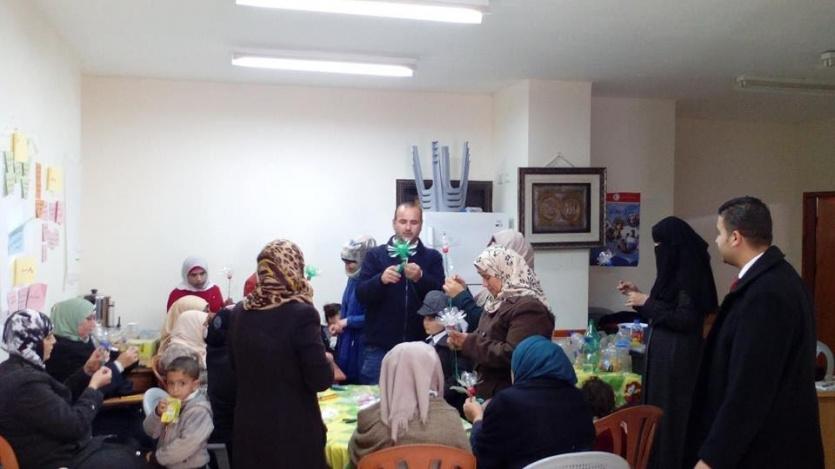 وقدم أ. ايمن عبد ربه شرحا وتدريبا عمليا حول طرق الاستفادة من النفايات البلاستيكية وتحويلها الى تحف فنية وادوات زينة.