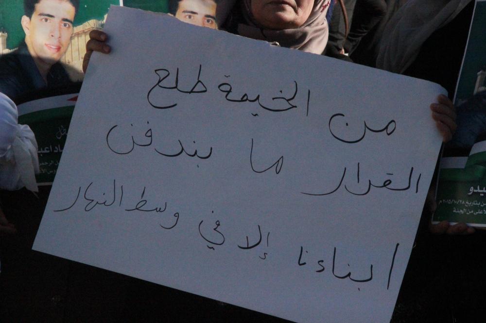 وقال الناطق الاعلامي باسم عوائل الشهداء المحتجزة جثامينهم رائد الأطرش، أن هذه الوقفة جاءت احتجاجا على سياسة الاحتلال الذي يتعنت ويحاول فرض شروطه بعدم الافراج عن جثامين الشهداء إلا اذا تم دفنهم ليلاً.