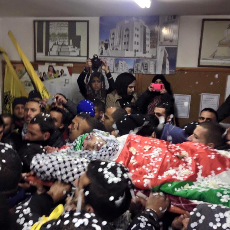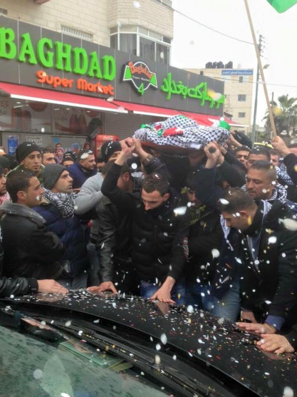 وانطلق موكب التشييع من مجمع فلسطين الطبي، مرورا بجامعة القدس المفتوحة، حيث كان يدرس الشهيد، قبل أن يحمل الجثمان في سيارة إسعاف وينقل إلى قرية عارورة.