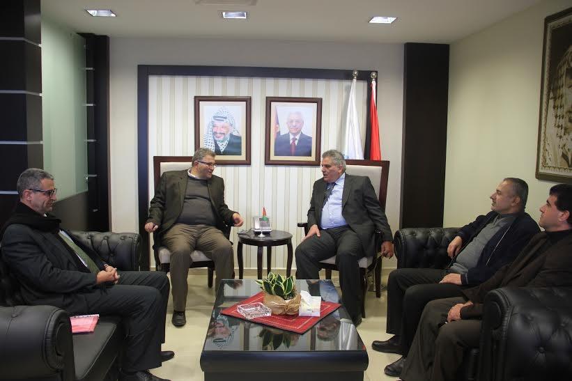التقى رئيس سلطة المياه م. مازن غنيم في مكتبه اليوم برئيس جامعة القدس الدكتور عماد ابوكشك يرافقه الدكتور عامر مرعي، بحضور م. حازم كتانة ود.صبحي سمحان من سلطة المياه لبحث سبل التعاون ما بين الطرفين للمساهمة في تحقيق التنمية المستدامة من خلال البرامج والدراسات البحثية وتبادل الخبرات والمعلومات المتعلقة بقطاع المياه والصرف الصحي.