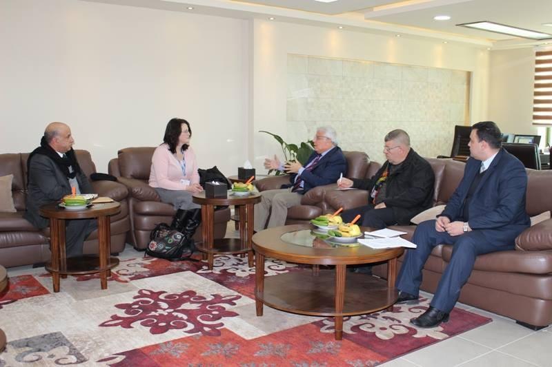 فتحت جامعة بوليتكنك فلسطين آفاق التعاون المشترك مع وكالة الأمم المتحدة للإغاثة وتشغيل اللاجئين الفلسطينيين في الشرق الأدنى، بحضور رئيسة دائرة الموارد البشرية شيرين هيل، ومدير التدريب وإدارة الأداء محمد عبد الله سرحان، ورئيس جامعة بوليتكنك فلسطين الأستاذ الدكتور عماد الخطيب، ونائب رئيس الجامعة لشؤون التخطيط والتنمية/ مدير العلاقات العامة والدولية المهندس أيمن سلطان.