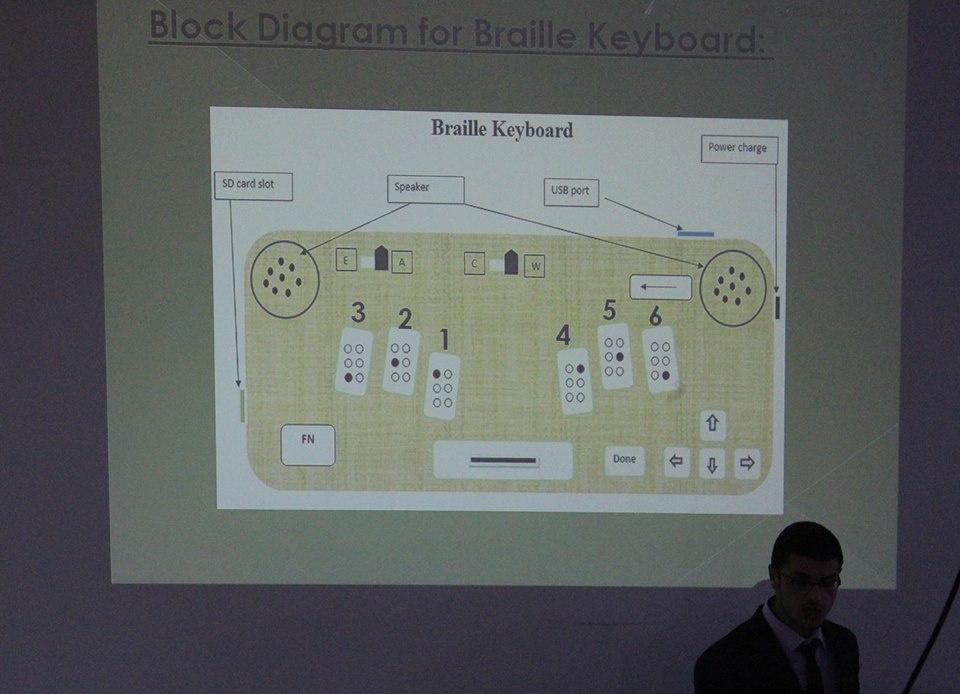 أبهر الطلبة ضياء دراوشة واسراء شلبي ومالك امام من الجامعة العربية الامريكية الحضور، بعد انتهاءهم من مناقشة مشروع تخرجهم، بالجهاز الذي اخترعوه حيث ساهم في سهولة التواصل بين الأشخاص المكفوفين مع المبصرين وهو "البريل كيبورد"، فالمكفوفون يستخدمون طابعة البريل التقليدية للمراسلات فيما بينهم، لكن من أجل المراسلات الكتابية والمخاطبة مع المبصرين بإمكانهم استخدام هذا الجهاز الجديد.