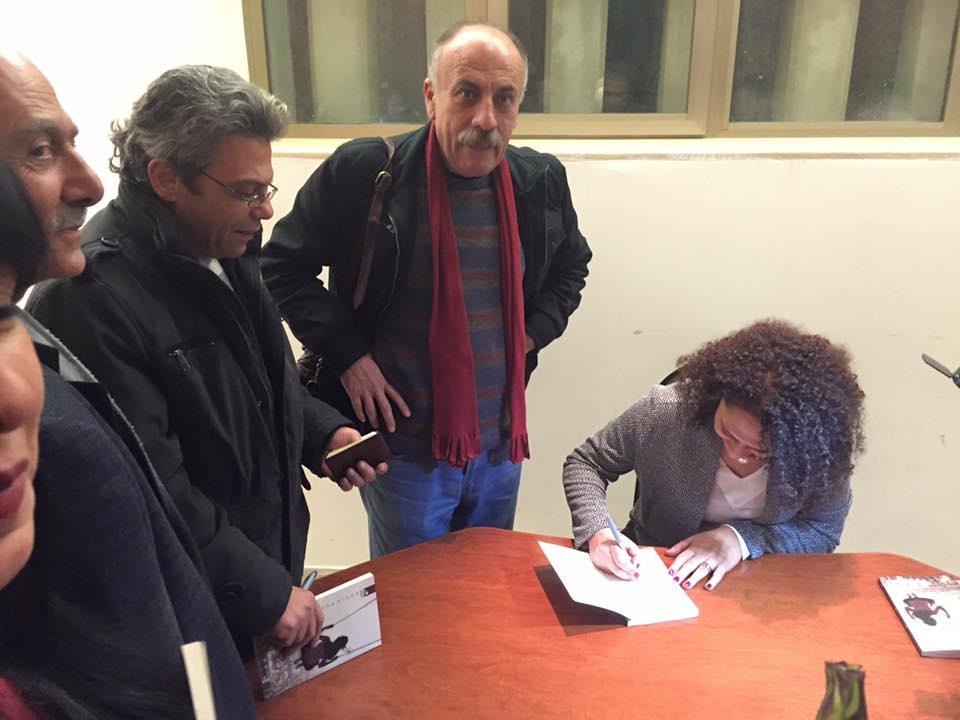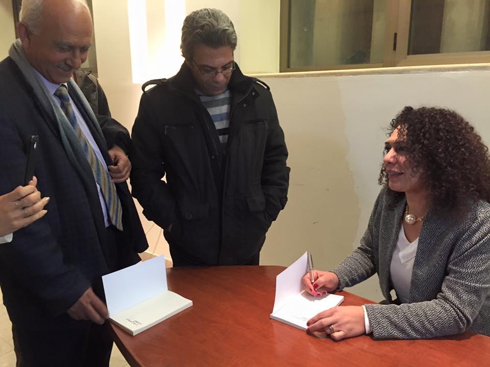 ووقعت حليوى نسخا من كتابها للحضور بعد نهاية الامسيه .