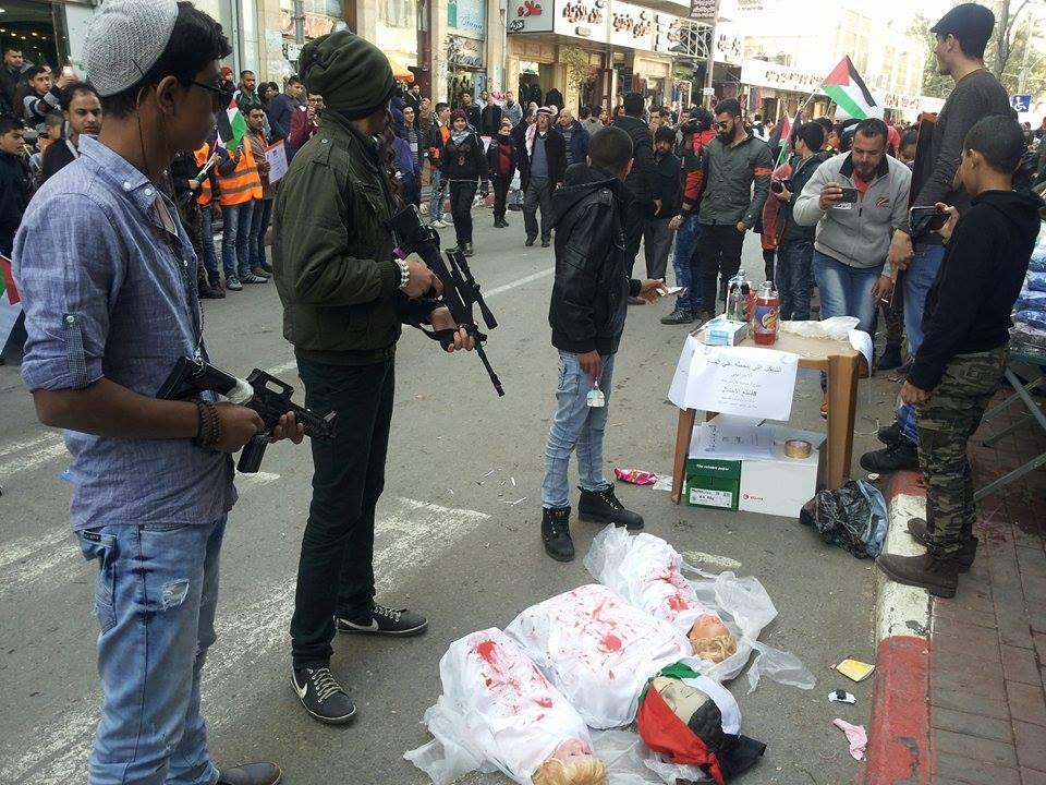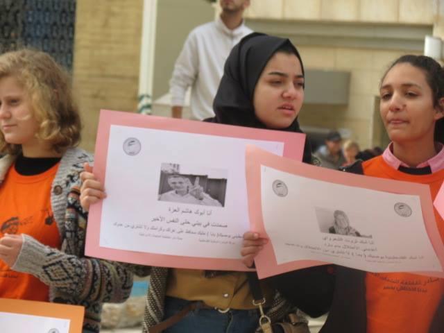 ومن ثم توجه النشطاء إلى مركز الحركة التجارية في المدينة وشكلوا سلسلة بشرية على طرفي الشارع رافعين يافطات تحتوي على رسائل من الشهداء أمثال الطفل علي دوابشة وأيضاً الأسرى أمثال الأسير الصحفي المضرب عن الطعام محمد القيق والطفل الأسير أحمد مناصرة مطالبين أبناء الشعب الفلسطيني بمقاطعة المنتجات الإسرائيلية التي تذهب أرباحها لتمويل جيش الاحتلال الذي ارتكب كل هذه الجرائم ومازال مستمراً فيها, وقد تم تجسيد أيضا هذه الرسالة عن طريق مشهد تعبيري نفذه نشطاء الحملة.