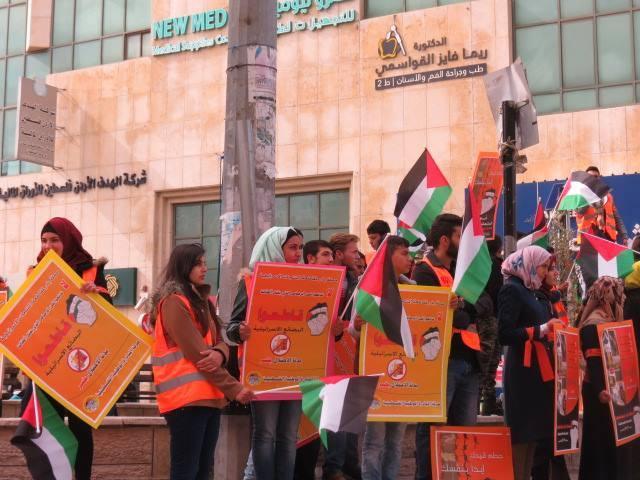 وقد انطلق المشاركون في مسيرة من أمام مسجد الحسين باتجاه دوار ابن رشد حاملين ومرددين لشعارات المقاومة والتحدي للاحتلال والتأكيد على أهمية مقاطعة المنتجات الإسرائيلية كأداة كفاحية هامة يمتلكها الجميع.