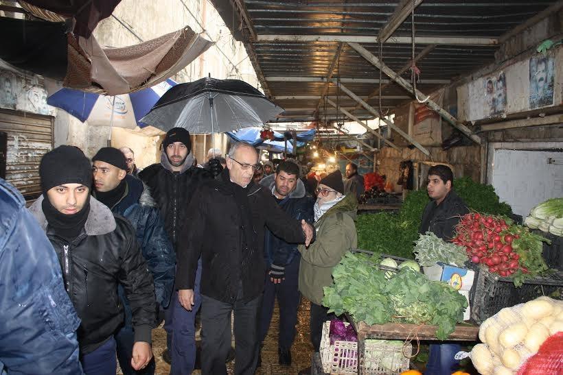 ضمن جولته التفقدية للأسواق في مدينة نابلس تفقد المهندس سميح طبيلة رئيس لجنة ادارة بلدية نابلس والدكتور خالد قادري نائب رئيس اللجنة، وممثلين عن شرطة المدينة، بالإضافة الى قسم الحراسة والتفتيش، منطقة الدوار وسوق البصل وخان التجار، وذلك بهدف تنظيم الأسواق في المدينة والاطلاع على الوضع القائم في تلك المناطق من أجل التحضير لاتخاذ إجراءات تتعلق بإعادة ترتيبها ،أسوة بالتي سبقت في منطقة السوق الشرقي قبل أيام، والتي لاقت استحسان ورضى من قبل كافة الجهات سواء التجار أو المواطنين على حد سواء.