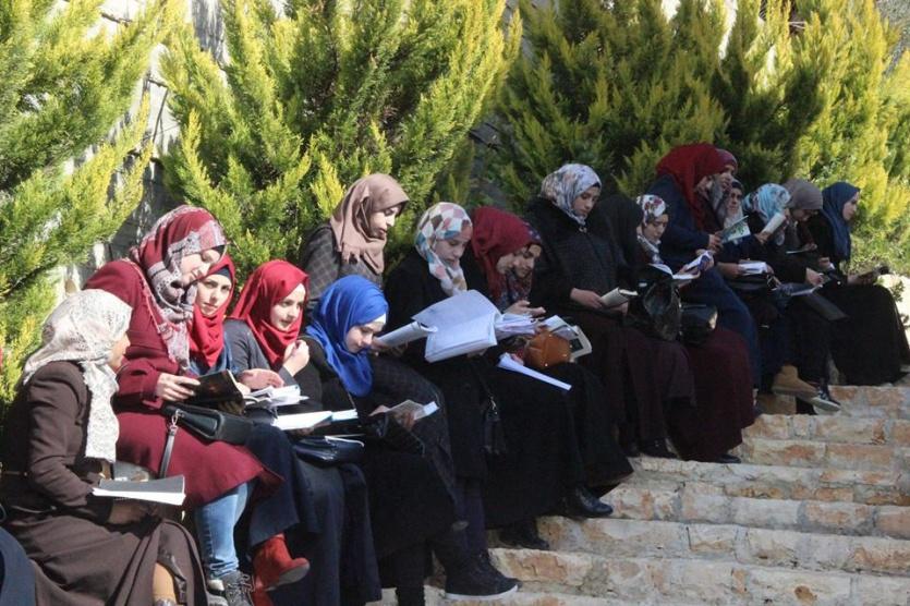الأجواء في جامعة الخليل اختلطت بين حرارة الشمس الحارقة وبين المشاعر الملتهبة ألما لفقدان زميلهم وصديقهم بهاء عليان وبين حبهم وشغفهم بالقراءة، فمقاعد وأسوار جامعة الخليل اكتظت بالطلبة الذين جلسوا بجانب بعضهم البعض ماسكين بأيديهم كتباً من مختلف ألوان المعرفة، مشكلين لوحة ثقافية تجمع كلّ الأفكار والتوجهات.