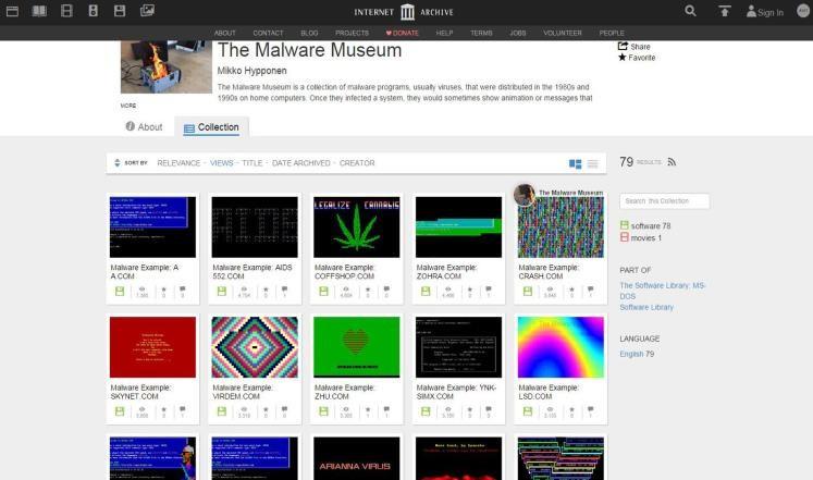 وهذا المتحف عبارة عن أرشيف يحتصنه موقع "أركايف.أورغ"، ويجمع أبرز البرامج الضارة في حقبة الثمانينيات والتسعينيات التي أصابت الحواسيب الشخصية المنزلية التي كانت تعمل بنظام التشغيل "دوس" (DOS)، وكانت بمجرد أن تصيب النظام تُظهر للمستخدم رسما متحركا طريفا أو رسالة بأن حاسوبه أصيب.