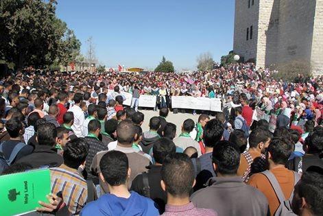 وشارك رئيس الجامعة د. عبد اللطيف أبو حجلة الأعداد الكبيرة من الطلبة والموظفين في الوقفة التي أقيمت أمام مبنى مجلس الطلبة في الجامعة، بدعوة من نقابة أساتذة وموظفي الجامعة، ورفعوا صور الأسير المضرب عن الطعام محمد القيق، وعدداً من أسرى جامعة بيرزيت، وطالبوا بتحرك شعبي ورسمي لإسناده وإسناد الأسرى للوصول إلى حرية.