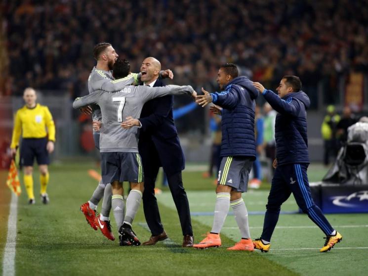 وسجل كريستيانو رونالدو الهدف الأول لفريقه بطريقة رائعة، لكنه فاجأ الجميع على غير العادة حينما ركض فرحاً صوب مدربه، أسطورة الكرة الفرنسية زين الدين زيدان، بعدما سجل الهدف في مرمى روما، حيث التقطت عدسات التصوير التلفزيونية اللقطة المميزة والفريدة لرونالدو.
