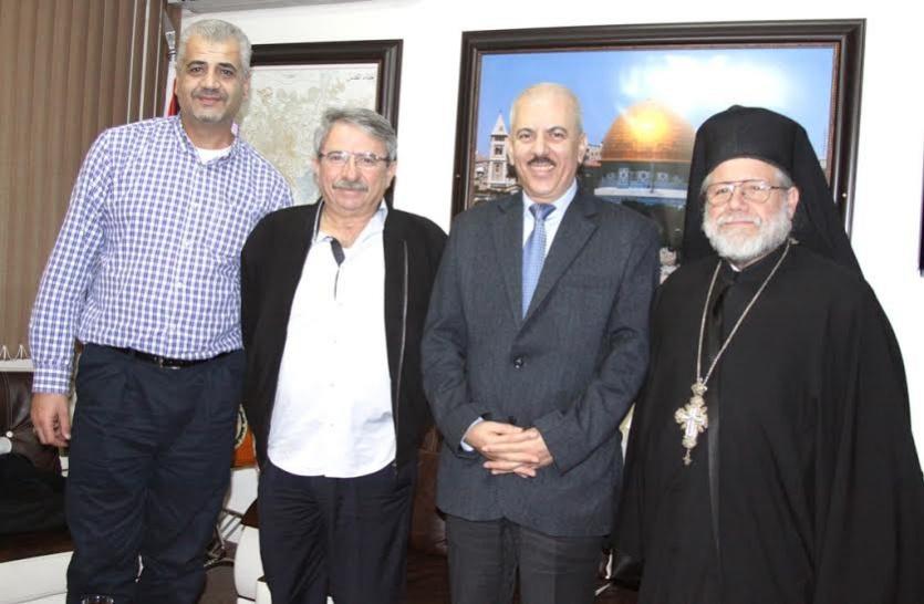 استقبل الأمين العام للهيئة الاسلامية المسيحية لنصرة القدس والمقدسات الدكتور حنا عيسى اليوم الثلاثاء وفداً ضم راعي كنيسة الروم الملكيين للكاثوليك في مدينة رام الله الارشمندريت عبد الله يوليو، ورئيس اتحاد أبناء رام الله – فلسطين عصام العسعس، وعضو مجلس ادارة تجارة وصناعة رام الله والبيرة بسام رباح في مقر الهيئة.
