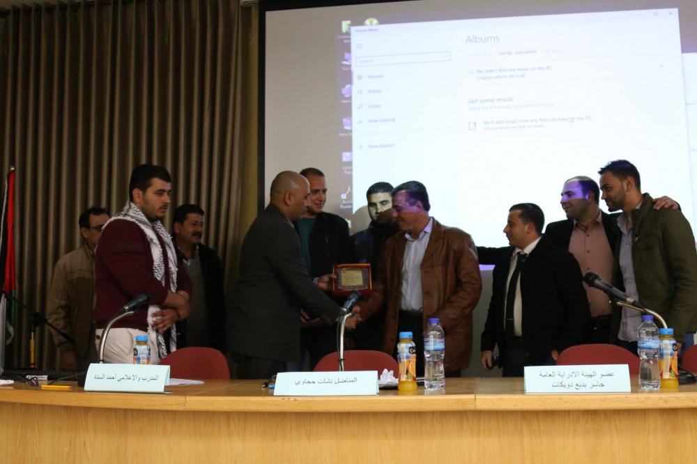 وتُوج اللقاء بتكريم حجاوي من حركة الشبيبة الطلابيَّة، والتقاط صورة جماعيَّة للحضور.