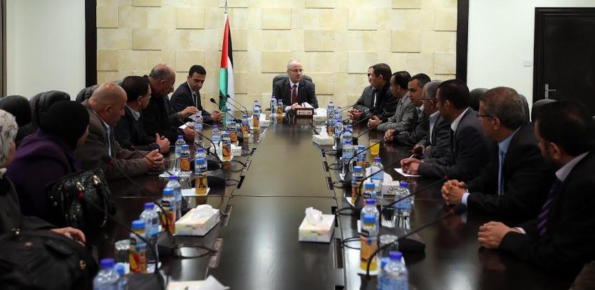 جاء ذلك خلال استقبال رئيس الوزراء، اليوم الاربعاء في مكتبه بمدينة رام الله، أعضاء الأمانة العامة الجدد لاتحاد المعلمين، برئاسة الأمين العام سائد ارزيقات.