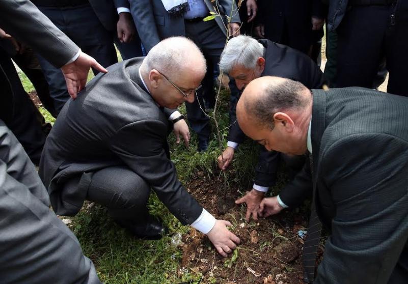 وبيّن الحمد الله: "لقد كان لزاما علينا، أن نعمل على الانضمام إلى أكبر اتفاقيات ومعاهدات دولية بيئية، تؤكد حقنا في السيطرة على مواردنا، وتحمي أرضنا وثرواتها، وتمنع الاحتلال من سرقة وتدمير التنوع البيئي الذي تمتاز به بلادنا. وتتركز الجهود اليوم على مواجهة خطر تقلص مساحة الغابات والأحراش والمحميات، إذ تعمل وزارة الزراعة على إنتاج حوالي 600 ألف شتلة سنويا وتحريج ألفي دونم سنويا في مواقع الغابات الحكومية، بالإضافة إلى توزيع 300 ألف شتلة حرجية وظلية على المزارعين والجمعيات وهيئات الحكم المحلي. كما وتوزع كل عام، في إطار مشروع تخضير فلسطين، حوالي مليون ونصف شتلة مثمرة وحرجية على المزارعين".