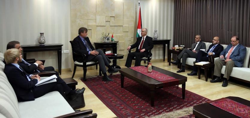 بحث رئيس الوزراء د. رامي الحمد الله، مع ممثل البنك الدولي في فلسطين ستين جوجينسين، اليوم الاثنين في مكتبه برام الله، سبل تنفيذ عدد من المشاريع الممولة من البنك الدولي، خاصة على صعيد تسجيل الأراضي.