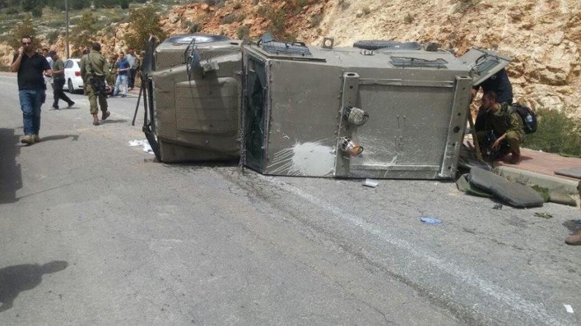اصابة اربعة جنود اثر انقلاب دورية عسكرية اسرائيلية شمال رام الله