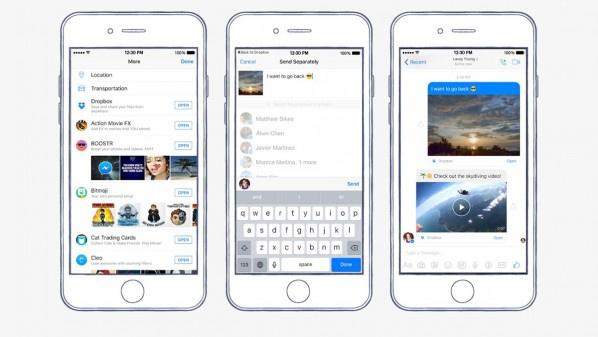 أعلنت شركة فيس بوك Facebook عن إضافة ميزة مشاركة الملفات والصور والفيديو والمستندات من حساب المستخدم على دروب بوكس Dropbox مباشرة من خلال تطبيق فيس بوك مسنجر Facebook Messenger. وأضافت فيس بوك أن على المستخدم القيام بتنصيب كلاً من تطبيقات فيس بوك مسنجر ودروب بوكس وتسجيل الدخول في كليهما للاستفادة من هذه الميزة.