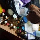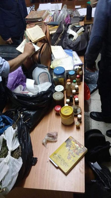 في البيت، كما ترون في الصور، كتب عن السحر والشعوذة والعوالم الخفية وتسخير الجن والشياطين والعالم الاخر. وفي البيت ايضاً، الكثير من المستحضرات والزيوت والعطور، ولبعضها اغراض مخفية.