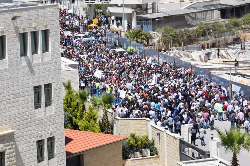 احتشد آلاف المواطنين في مسيرة أمام مجلس الوزراء في رام الله احتجاجاً على قانون الضمان الاجتماعي والذي اعُتبر مجحفاً في حق المواطنين ولا يلبي حقوق الفئات المهمشة.