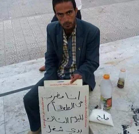 افترش سعيد أرصفة الشوارع منذ 5 أيام تزامناً مع يوم العمال العالمي، حمل خلالها؛ شعارات عبر فيها عن رفضه للانتحار هرباً من الأوضاع الراهنة، ووجه من خلالها رسالة قوية وواضحة للمسؤولين كتب فيها: "انا المواطن أعلى درجة في الدولة، لن أنتحر ولن احرق نفسي أنتم ستحرقون في جهنم، انظروا الى الشباب، لن اعود للمنزل الا بعمل".