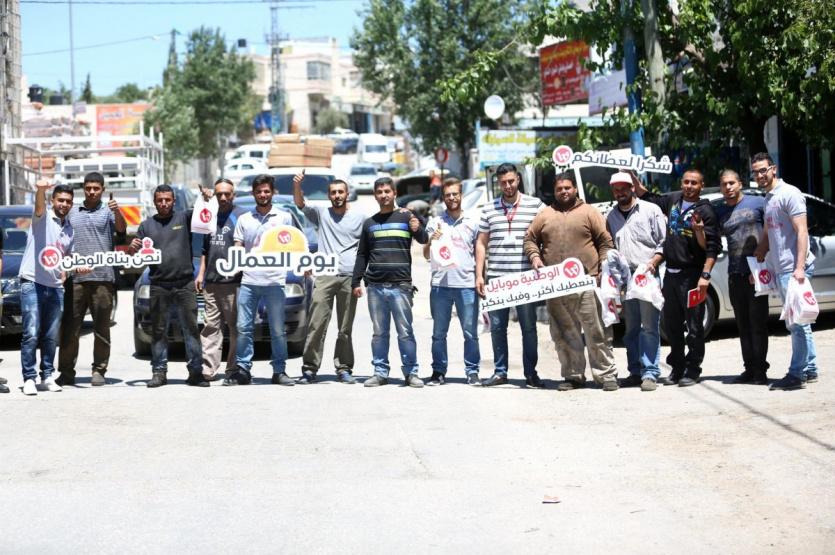 وفي سياق متصل، قامت الوطنية موبايل بتكريم عمال فلسطين من خلال حملة نظمتها الشركة في الشارع من خلال زيارة عدد من عمال البناء في العمارات والمنازل، وورش الميكانيك، وسائقي التكسي، إضافة إلى العمال في المناجر وغيرها الكثير.