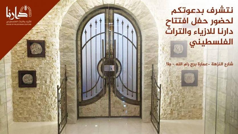 تفتتح شركة "دارنا للازياء والتراث الفلسطيني" معرضها الاول والمتخصص بالتراث والأعمال الفنية اليدوية الفلسطينية، اليوم الثلاثاء، الساعة الثانية والنصف ظهرا في عمارة برج رام الله - شارع النزهة- مقابل مكتبة بلدية رام الله.