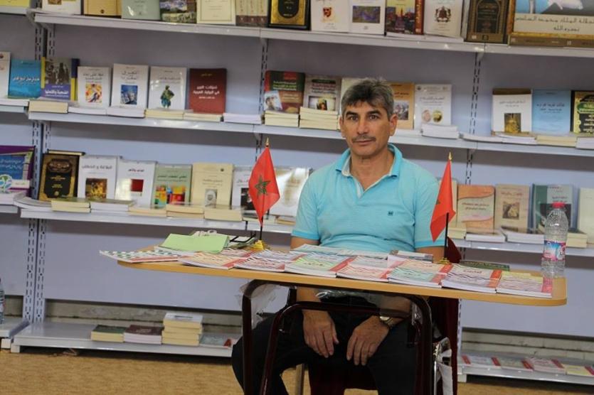 يجلس على كرسي خلف طاولة صغيرة غطتها كتب لأفضل الروايات المغربية، وحوله وخلفه كتب وضعت بعناية على الرفوف، يقول عبد الغني إن هذه المرة الثالثة التي يشارك فيها بالمعرض بدعم من وزارة الثقافة المغربية التي تكفلت بكامل تكاليف السفر حرصا منها على المشاركة ليس لشيء انما فقط لكون المعرض في فلسطين.