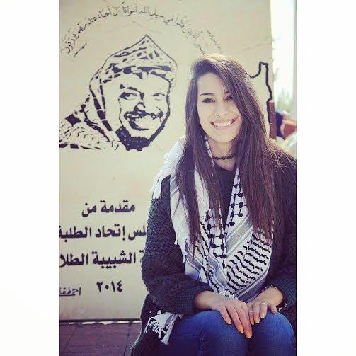 هي فتاة في الثامنة عشر من عمرها، نحيلة الجسد سمراء البشرة، نادرا ما تراها بدون كوفيتها التي تتوشح بها منذ دخولها العالم الجامعي، بعد أن انهت دراستها الثانوية التحقت بجامعة فلسطين الأهلية في بيت لحم، اختارت تخصص المحاسبة، ومنذ أيامها الأولى في الجامعة انضمت لأخوات دلال المغربي لتكون عضو في اللجنة، هي المقدسية دانا رويضي.