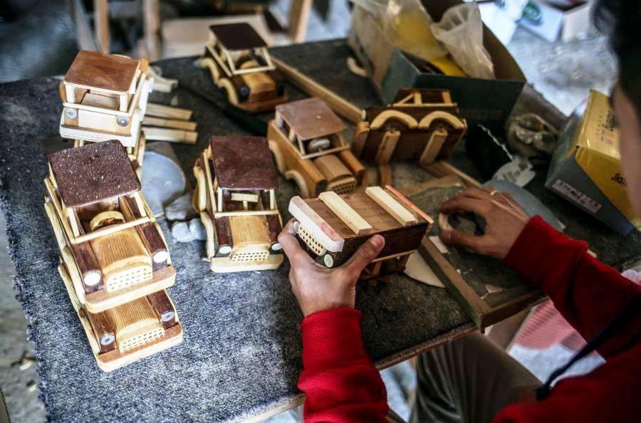 في غزة.. تُحف ونماذج رائعة تُصنع من بقايا الأخشاب التالفة