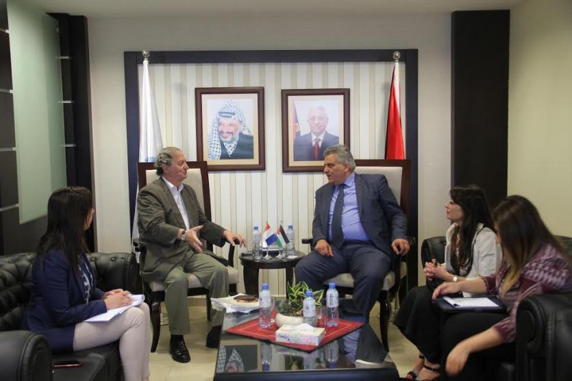 التقى المهندس مازن غنيم في مكتبه اليوم بممثل شركة سويز الفرنسيةبحضور السيدة جمانة اليحيى مسؤول الملف الاقتصادي لدى سفارة فلسطين في فرنسا والسيدة ديانا الرمحي من وزارة الخارجية بهدف الاطلاع على الاعمال التي تقوم بها هذه الشركة لا سيما اختصاصها في المشاريع المتعلقة بالتحلية.