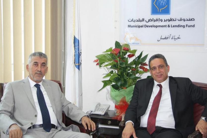 في إطار العمل التكاملي بين نقابة المهندسين وصندوق تطوير وإقراض البلديات، التقى مدير عام الصندوق د. توفيق البديري في مكتبه اليوم الأربعاء، نقيب المهندسين الفلسطينيين المهندس مجدي الصالح.