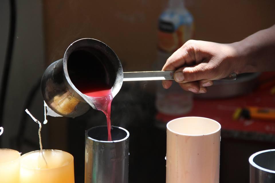 تمر مرحلة صناعة الشمع بعدة مراحل تبدأ بتسييح الشمع ثم تجهيز القوالب، تليها مرحلة وضع الملتينة والمسلة حتى يجهز القالب للصب، ثم توضع الصبغات وبعدها الصب، وبعد أربع ساعات يستخرج الشمع من القالب، ثم تنقل لمرحلة الكوي، وجميع هذه المراحل يقوم بها الطلبة ذوي الاعاقة باستثناء مرحلة الكوي كونها تشكل خطورة.