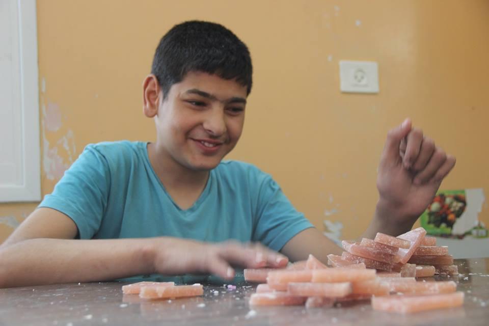طه أبو حسين- كل ما في الوجود قابل للتغيير إن توفرت الارادة والمثابرة، غير أن هناك متغيرات تضع العقل في الكف كما يقال؛ كأن ترى أشخاصاً من ذوي الاعاقة العقلية يعملون جنباً الى جنب، بانتظام وتكاملية وسلاسة عبر خطوط انتاج سليمة وصحية، لينتجوا منتجات ليست أقل جودة من تلك التي ينتجها الأشخاص الأصحاء، وهذه الصورة تتلخص في مشغل صناعة الشموع بمركر الرجاء للتربية الخاصة التابع لجمعية الهلال الأحمر الفلسطيني في الخليل.