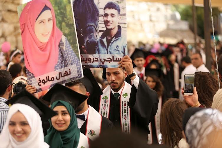 قام خريجان جامعيان خلال حفل تخريج الفوج الحادي والاربعين في جامعة بيرزيت اليوم السبت برفع صورتي الشهيد ساجي درويش وكذلك زميلتهم شهيدة العلم الفتاة نهال المالوخ والذان كانا يدرسان تخصص الصحافة والاعلام في الجامعة ما اثار اعجاب الحضور والهيئة التدريسية بهذه اللفتة منهما.