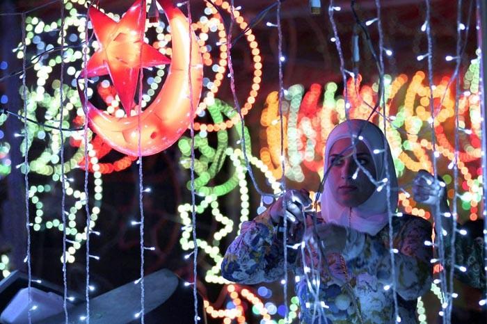 نجوم وأهلة وأسلاك الكهرباء وغيرها .. سلعة اصبح يشتاق لشرائها المواطنون لتزين منازلهم قبيل بدء شهر رمضان .